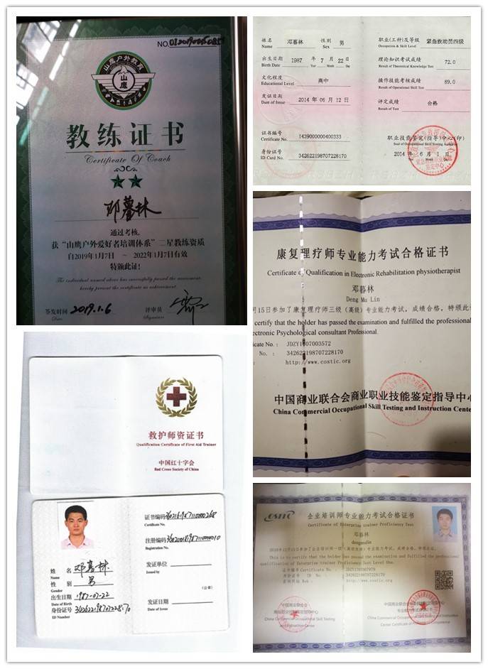 中登协山地救援讲师,中级户外指导员