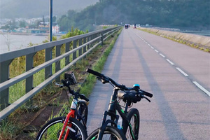 这里骑行一路基本上是沿着河骑行,专用单车道非常笔直,无忧无虑地享受凉风吧!期间可以停下车,在城门河旁拍个照打个卡。