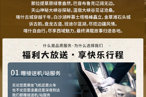 特别说明:此行程为南疆系列散拼产品,会有南疆同行程不同完团时间的客人一起出团,行程中可能会涉及分车情况,对此情况介意的客人谨慎报名,如报名成功则默认同意此行程出团安排。此点不作为投诉点,敬请知晓,感谢理解!