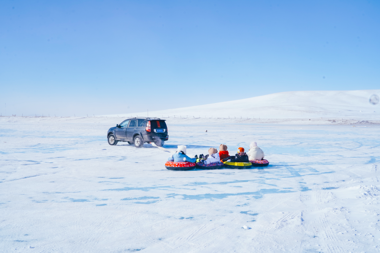 最最最受欢迎的还有“冰上越野串串烧”,越野车拉着一排小宝贝在雪地上漂移,雪原上的“速度与激情”让无数孩子快乐到没边~