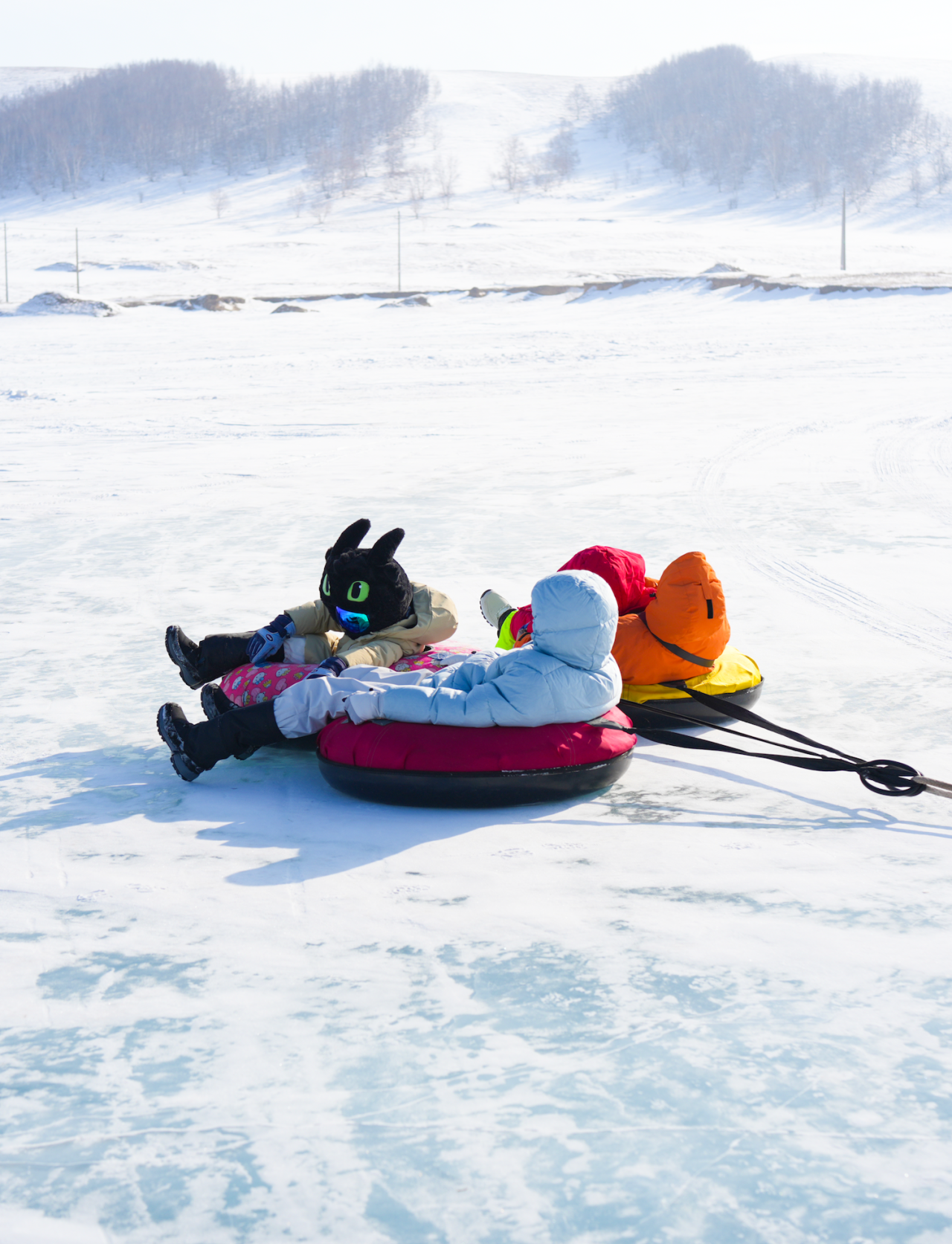升级N+玩法:堆雪人、打雪仗、拔河比赛、滑冰车、打冰陀螺、高山滑雪圈、冰上越野串串烧、泼水成冰、