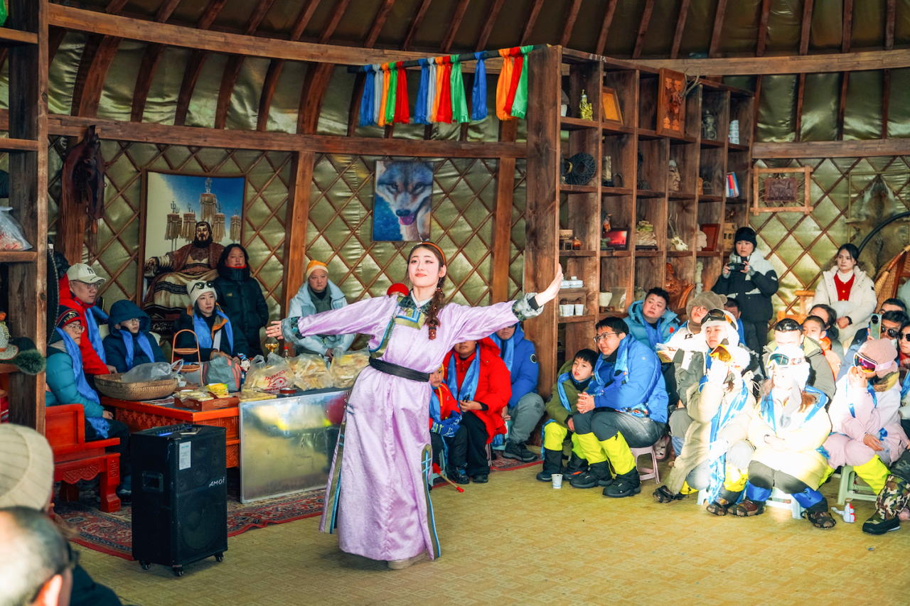 6、蒙古体验:下马酒、献哈达、祭火大典、马拉爬犁、换蒙古服装、高山滑雪圈等