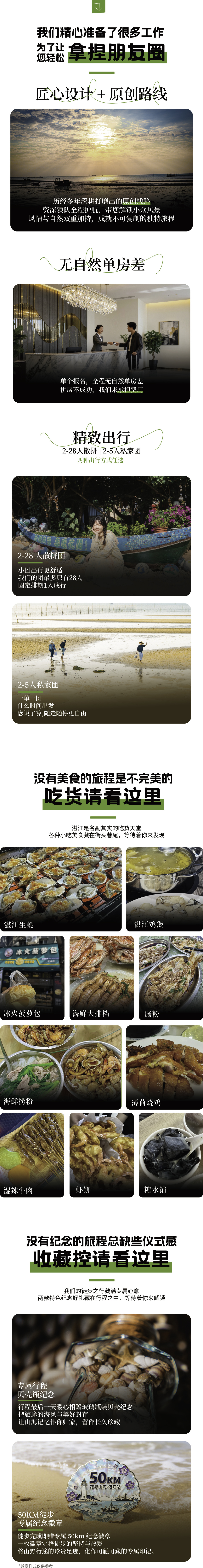 ➁ 住宿:湛江市区1晚+草潭或乐民镇1晚+江洪镇1晚+南极村1晚酒店或民宿(2人/间,除湛江市区外其他住宿均为乡镇酒店民宿,软硬件上均无法与城区相比,且部分地区酒店房间较少,可能需要多店分开住宿的情况,敬请知悉!)