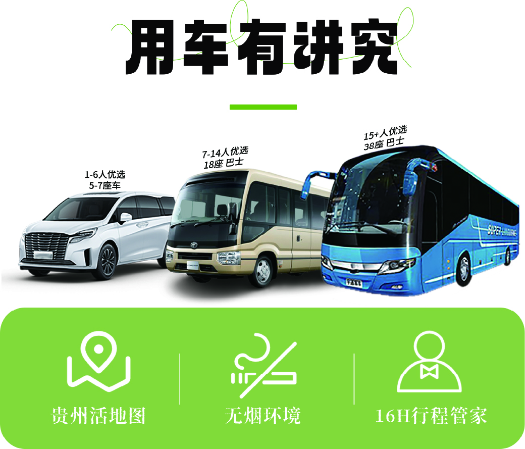 ➀ 用车:当地行程用车(根据具体人数选配车型:5-38座)