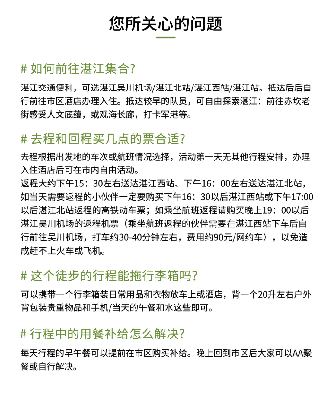 ➀ 交通:各地往返湛江的大交通费用(可代定全国各地往返高铁动车票,如有需求请联系客服咨询)