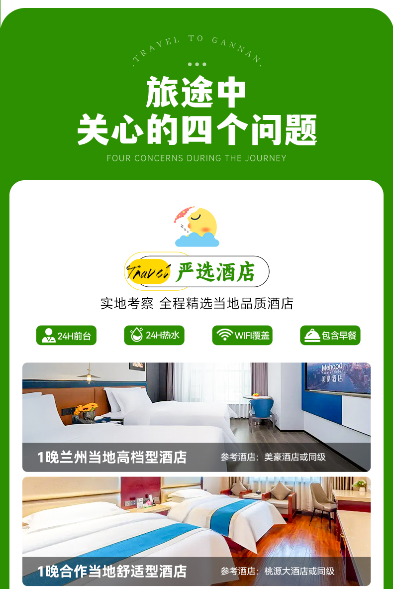 1、兰州集合当天,2人及以上免费赠送接机/站服务,请您提供航班信息/高铁车次。