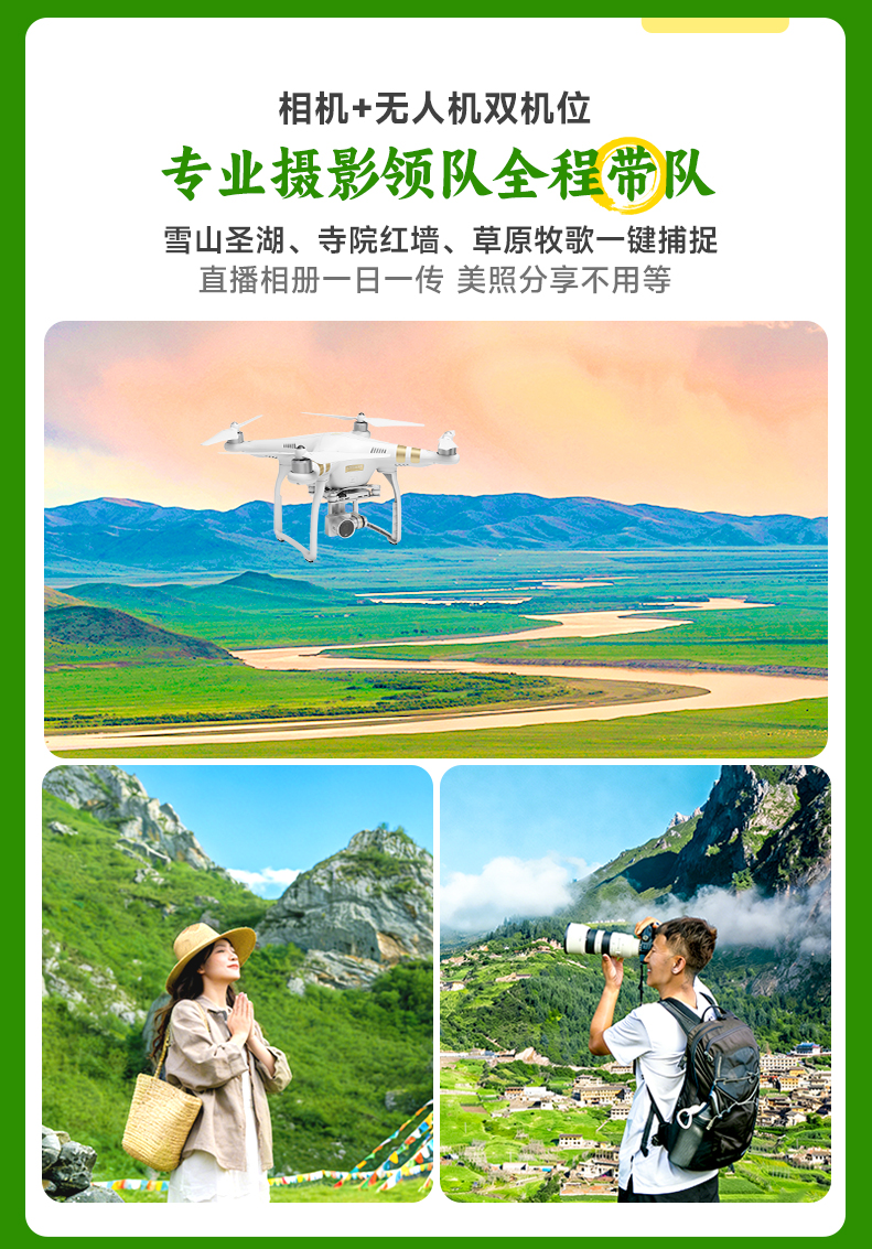 2.报名人数未满足摄影师随团的,领队或司兼导也可帮忙拍,拍摄效果没法与摄影师对比。