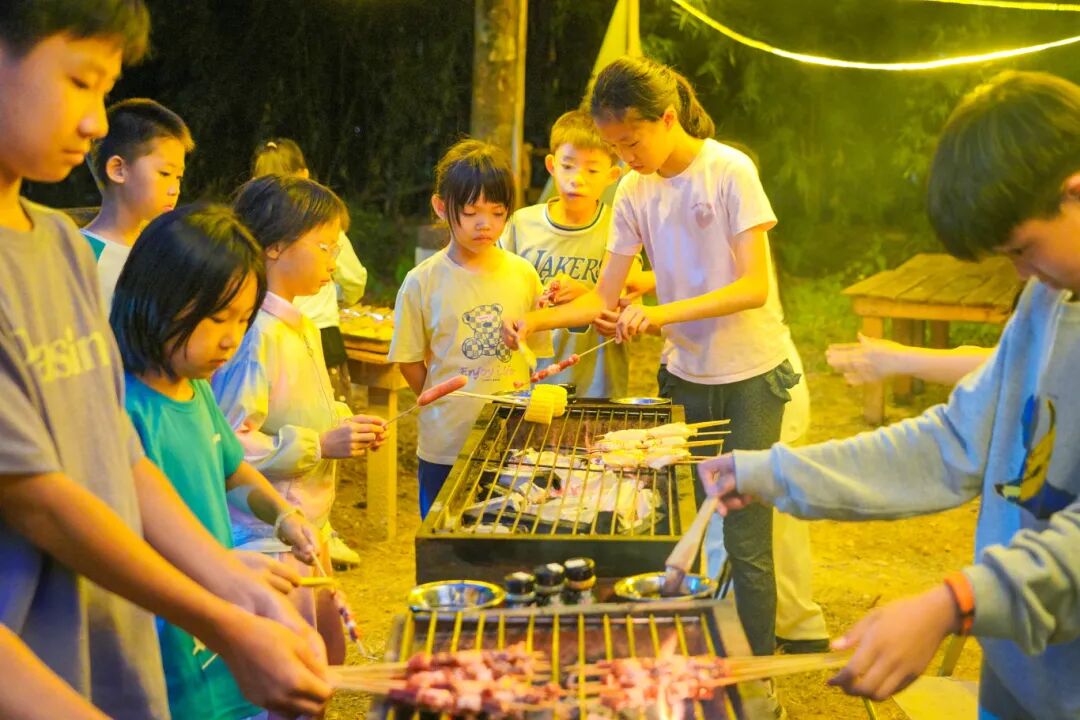 统一营地用餐,均由专业餐饮团队打造营养餐品,注重用餐方式多元化,包含围餐、竹筒饭等,新鲜蔬菜、肉类每日直供,保证孩子们的营养摄入均衡。