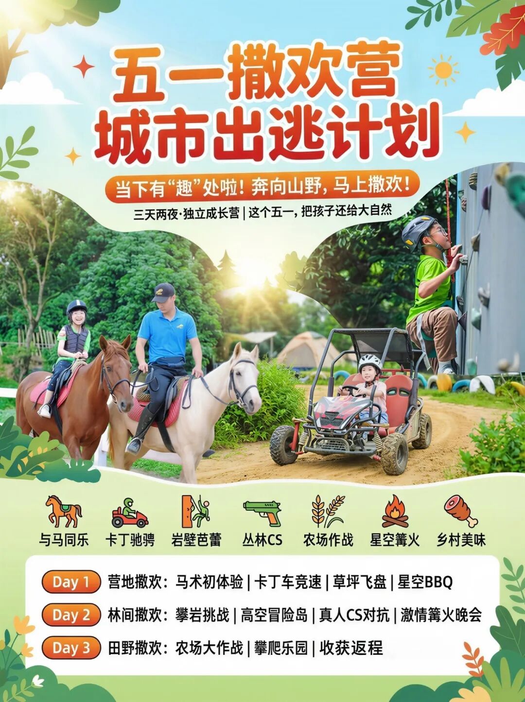 马术驰骋、丛林穿越、篝火夜话……