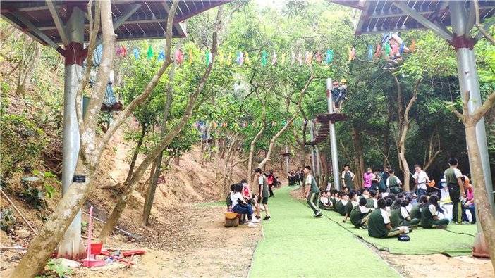 研学课程:插秧(季节性开放)、石磨豆浆、丛林穿越(高空项目)、攀树、绳结文化、盆栽种植、手工坊(陶艺体验、植物拓染、木工、扎染四选一)、非洲部落(面部彩绘、服饰体验)