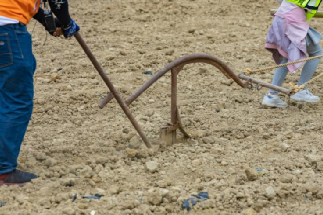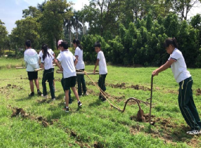 在老师的带领讲解下,大家走进农具课堂,了解曲辕犁,木耙,锄头等传统农具的种类,作用和使用方法,完成农耕体验课程任务