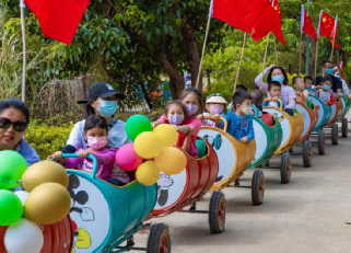 乘坐网红小火车,穿梭于田园花海中,沿路风景也是极好,一路欢声笑语,享受美好的春日时光!
