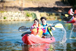 皮划艇是一项很有锻炼价值的水上项目,亲近自然,亲近水,不仅能锻炼个人能力还能很好的锻炼团队协作能力。水上皮划艇两人成团,团队协作靠的是队员齐心协力和共同掌握划桨的节奏。