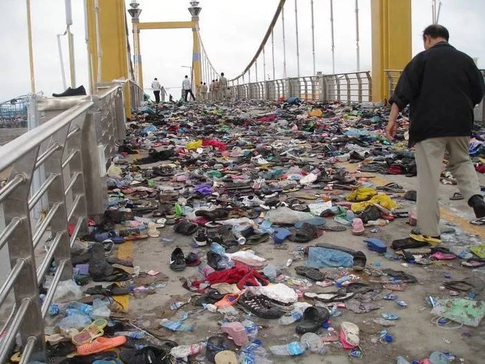 2005年8月31日,参加宗教活动的人群在通过伊拉克一座大桥时,恐怖袭击的传言导致人群失控,约1000人死亡。