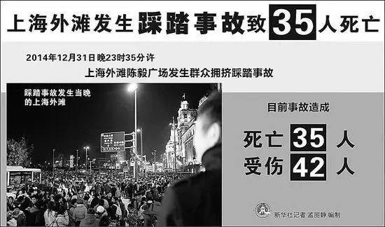 2015年1月1日本该是喜迎新年的一天,却被突如其来的黑色新闻打断了这个节日的美好。上海外滩陈毅广场跨年夜发生踩踏事件,死亡36人,伤47人。