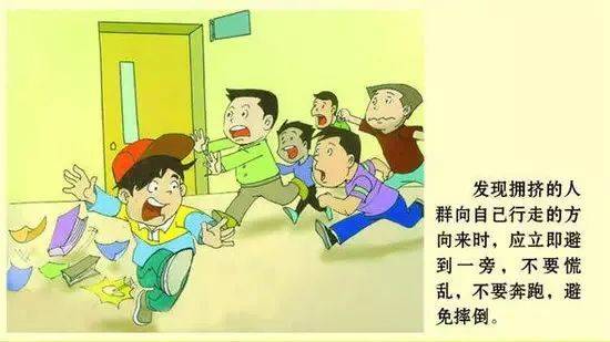 大家在行进中,若发现慌乱人群向自己方向涌来,应快速躲到一旁,或蹲在附近的墙角下,以避开人群。