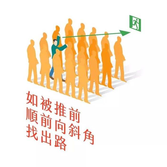如果你是身处拥挤人群最外围的人,当你听到人群中传出有节奏的呼喊声(“后退”)时,你应该意识到这是一个发生踩踏事故的警示信号。