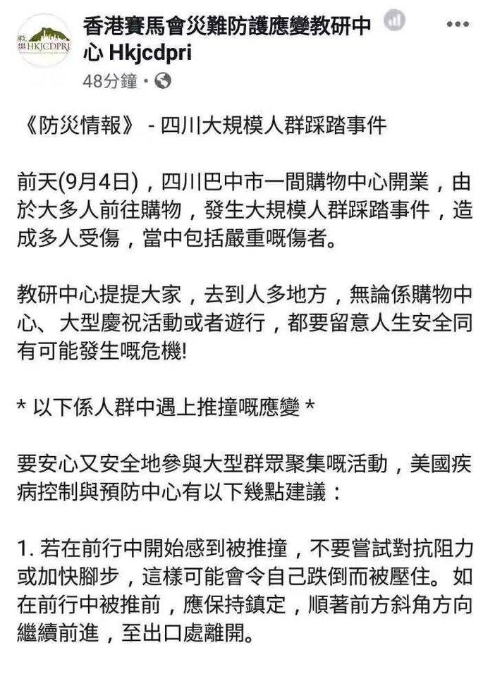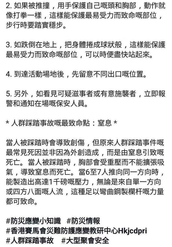 在人群密集的地方,无论系购物中心、大型庆祝活动或者游行,都要留意人生安全,以及有可能发生的踩踏危机!