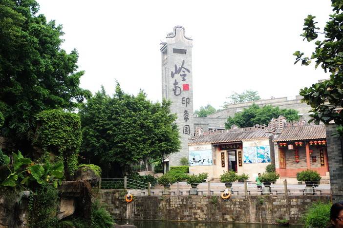 岭南印象园位于广州大学城(小谷围岛)南部,原练溪村的区域内。这里四面环水,西临洛溪岛、北临生物岛、东临长洲岛、与会展中心所在的琶洲岛隔江相望园中富有特色的街巷、宗祠、民居和店铺等,充分展现了岭南传统文化的精华。景区突出原生的岭南文化和乡土景观,复原岭南民间繁荣生活场景,适应蓬勃发展的大城市周边旅游日益生活化的趋势,旅游需求,将成为以岭南建筑完整、民间文化深厚、田园乡村风情浓郁,融文化溯源、旅游观光、乡村度假、休闲娱乐等功能为一体的文化旅游大观园。成为现代人了解岭南古文化的窗口,岭南人回味溯源本土文化的沃土,外地人短时间了解岭南文化的课堂,满足了广大游客一天了解岭南民间千年古文化的心愿。