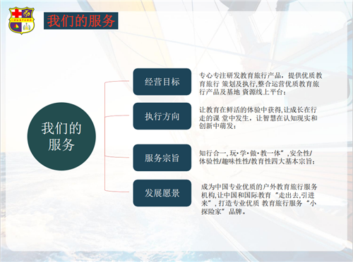 小探险家专注营地教育、户外活动、团建拓展、亲子教育、国内外游学的高品质青少年营地教育服务机构,结合国际“青年奖励计划”以及“国际童军运动”理念,并通过启发性实践,体验挑战和探索,学习新的理念与技能。为孩子提供户外生存技巧训练、压力和困境的面对、团队协作、沟通协调能力的课程。