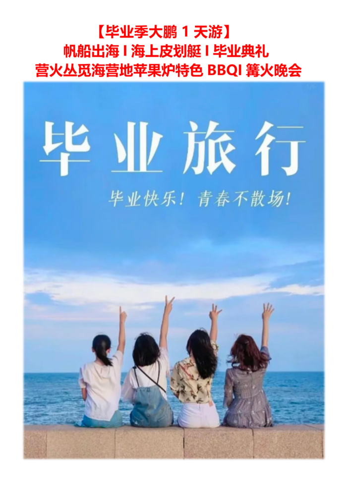 【毕业季大鹏 1 天游】 帆船出海 I 海上皮划艇 I 毕业典礼 营火丛觅海营地苹果炉特色 BBQI 篝火晚会