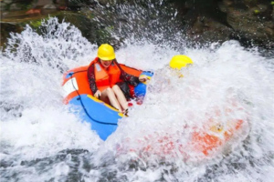 无敌漂:全长6350米,总落差391米,其中最大落差57米,连续467米、近90度的急流落差,漂程约140分钟。