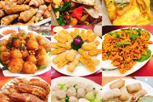 陆丰美食街特色美食:糯米兜 、猪肠粿 、粿条汤、姜醋蛋与五果汤、菜包粿 、甲子鱼丸、猪脚圈、炒糕粿、蚝烙、鸡蛋饼等等