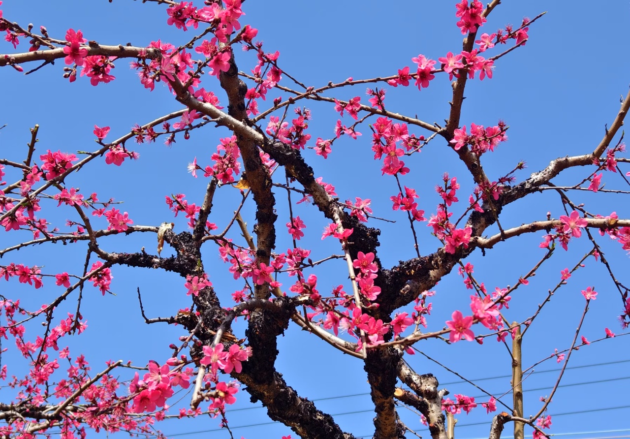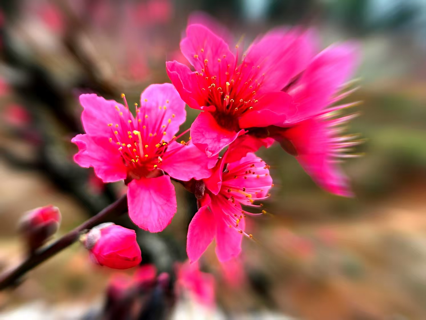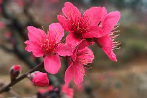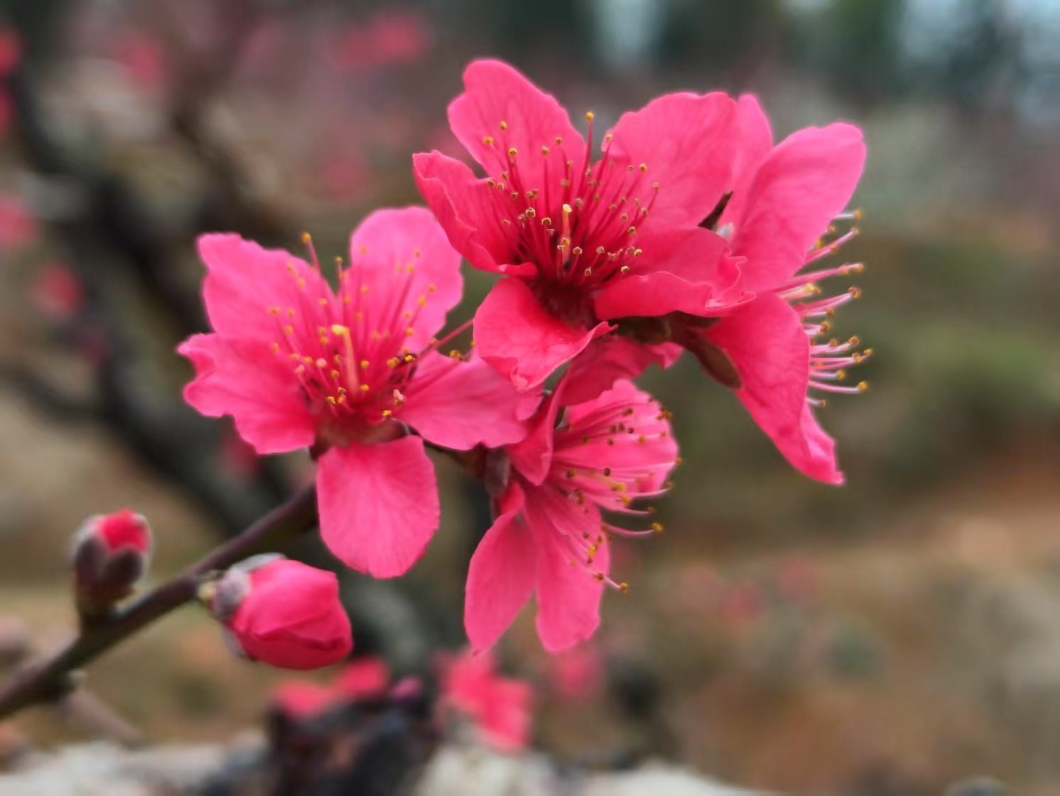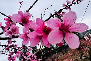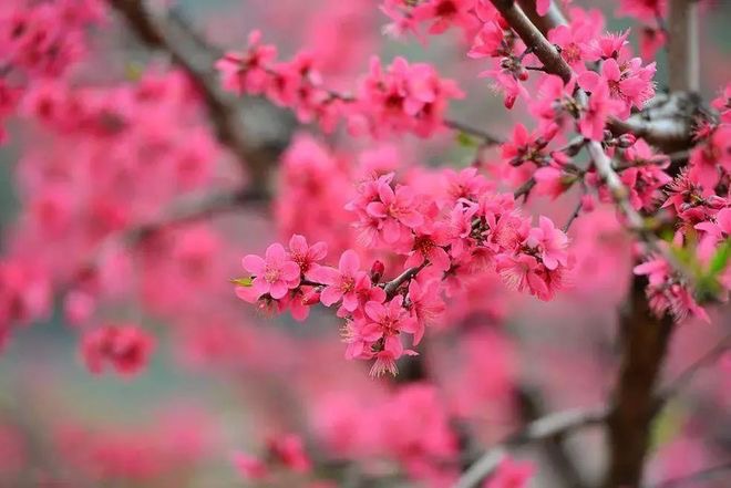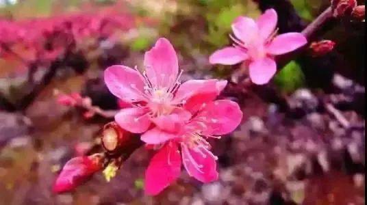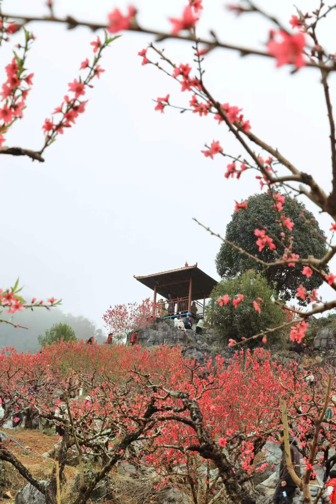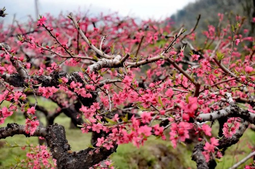 每年二、三月,桃花盛开之时,漫山遍野一片绯红