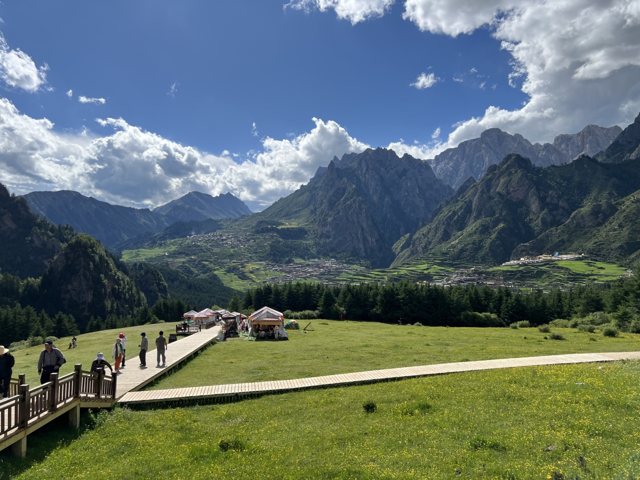 在群山环绕之中,有一处大片的草坪,平整的木栈道,那就是【仙女滩】在这里可以一览无余的饱览整个扎尕那山峰的全景。在这里漫步,野花在草场上竞相绽放,只为一睹扎尕那的美丽。除了观景台观景,有时间体力兴趣还有徒步穿越线路,也可以观光车+徒步+骑马等方式(费用需自理)
