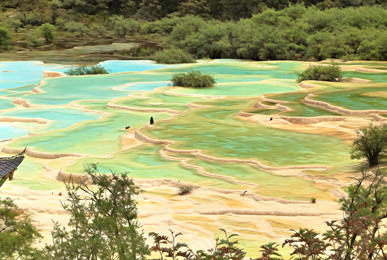 黄龙海拨较高,大家可根据自己的体力量力而行,值得一提的是黄龙寺旁的五彩池,无数个大大小小的池子像是装满五彩颜料的调色盘,在阳光下光彩夺目,摄人心魄。沿途还可欣赏迎宾池、飞瀑流辉、洗身洞、盆景池、黄龙寺等。